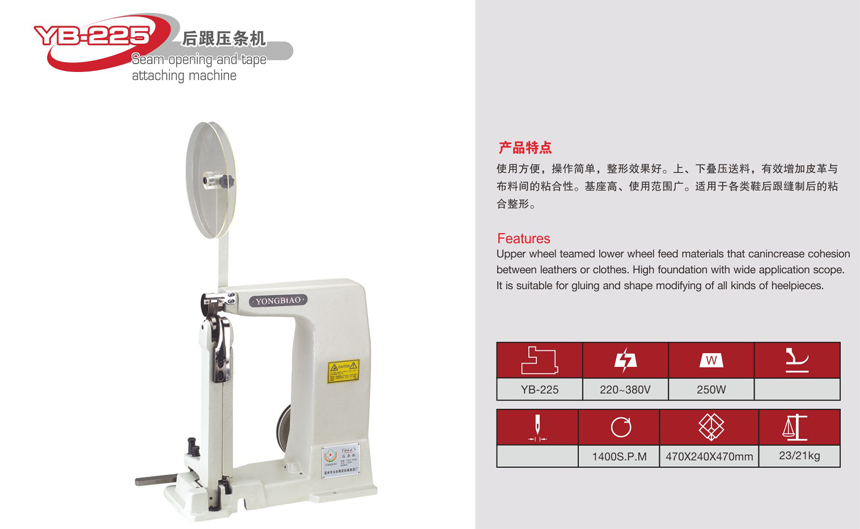 機(jī)器型號  YB-225  機(jī)種名稱 后跟壓條機(jī)